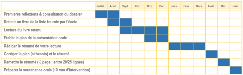 Calendrier des étapes pour la préparation de l'oral